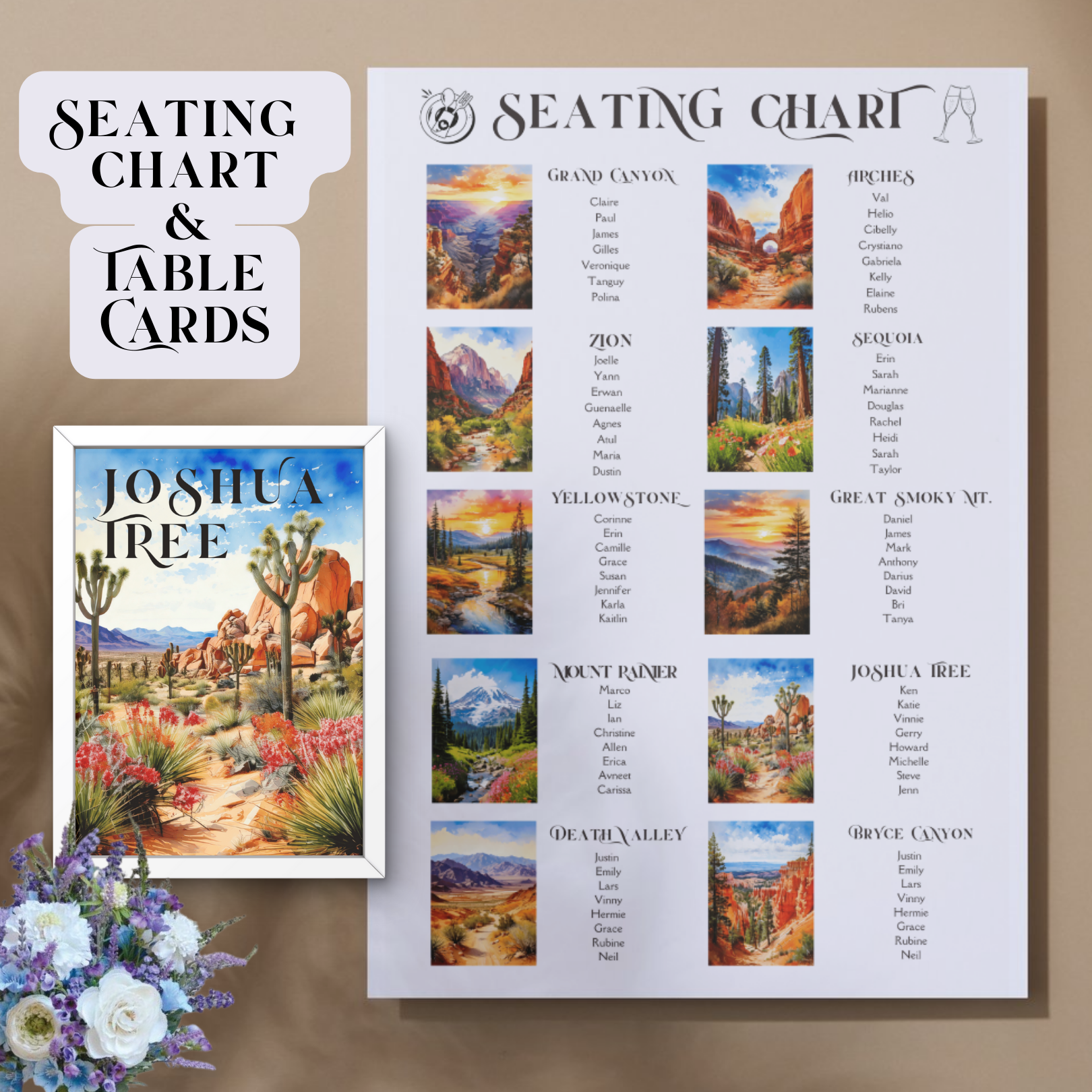 American National Parks Wedding Seating Chart & Table Cards/ Adventure Wedding Decor, Outdoor Rustic, Editable Seating Chart and Table Signs