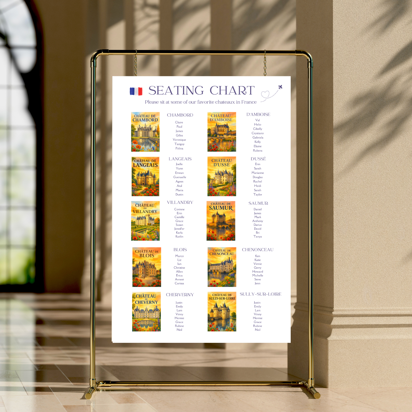 French Château Wedding Seating Chart | Destination Wedding Seating Poster | Travel-Themed Decor | Printable & Editable Canva Template