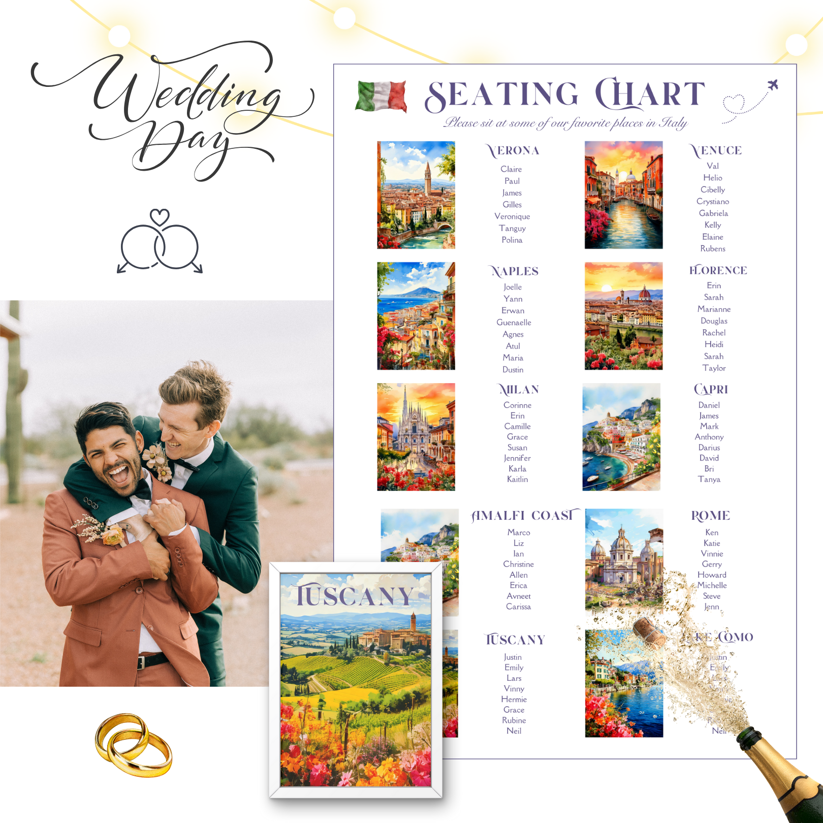✨ Bring Your Wedding Dreams to Life with Our Unique Italy Travel-Themed Table Top & Seating Chart! ✨
